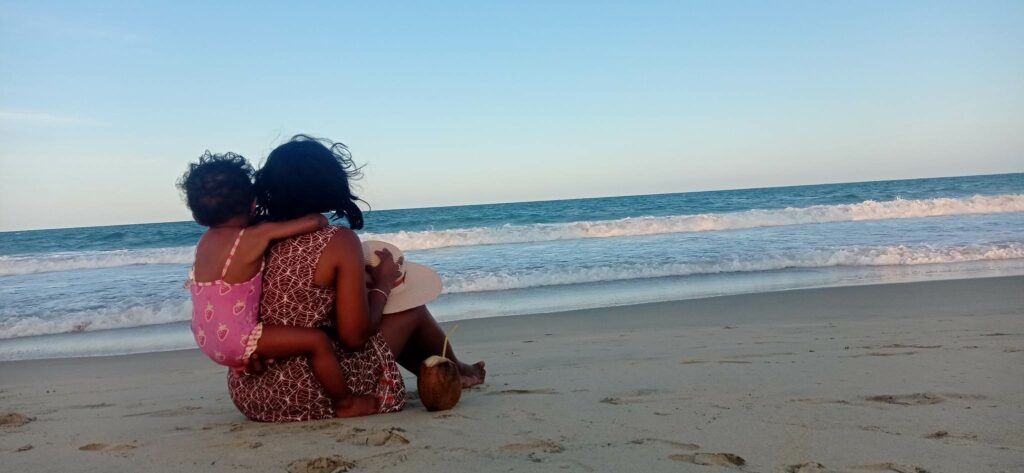 Crédit photo : Annick (Image d’une femme et son enfant, les yeux rivés sur les vagues, créent des souvenirs précieux imprégnés de paix et de tendresse).